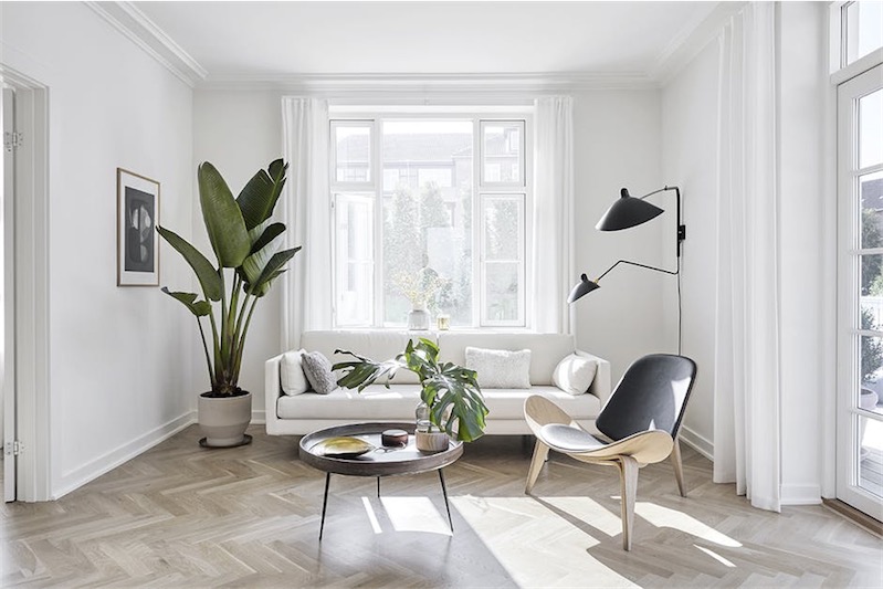 Cuanta paz transmite este interior y es que su gama cromática basada en blancos y negros deja poco margen a la estridencia. Si a este sencillo, pero siempre exitoso, binomio cromático le añadimos unos suelos de madera de roble claro, también presente en muebles y cocina, la base no puede ser más serena. Aquí la luz se propaga gracias a preciosas ventanas y a la elección correcta de piezas de mobiliario, algunas de ellas clásicos del diseño contemporáneo. Un mix actual, sereno y luminoso que encaja a la perfección con la esencia tradicional de esta bonita casa que data del 1897. Disfruten las fotos!